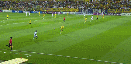 第10分钟,扬萨内带球内切低射破门,利雅得胜利0-1!